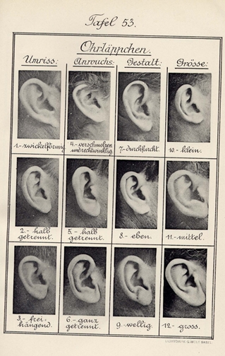 Abb. „Gedächtnisbild“ und „Ohrläppchen“ aus Bertillon a.a.O.