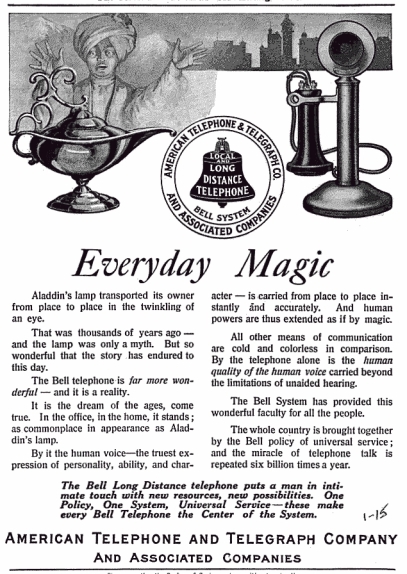 […] Aladins Lampe brachte ihren Beisitzer im Nu von Ort zu Ort.1910 Ad American Telephone Telegraph ATT Bell Everyday Magic